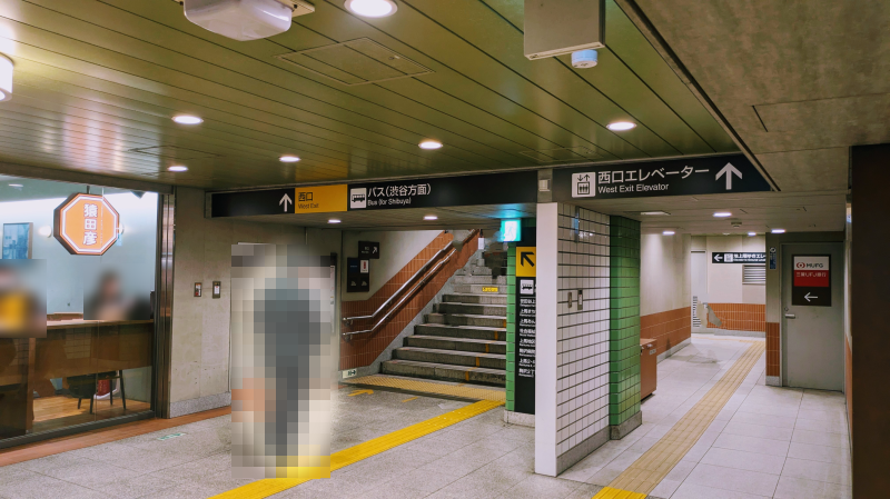 ※エレベーターをご利用の場合は、地上西口横、または地上の東口の横に出る2つのエレベーターがあります。